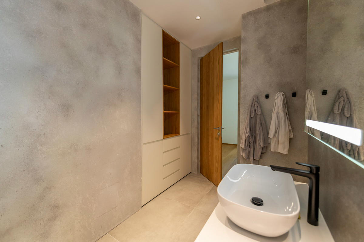 The warmth of wood, white surfaces and Kerrock composite material in the bathrooms create a pleasant and relaxing ambience.